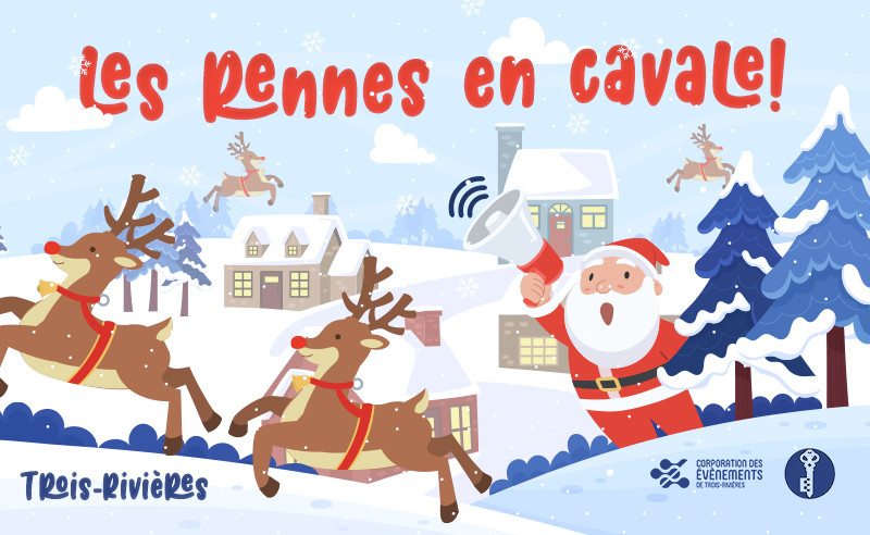 Les Rennes en Cavale est un parcours en voiture de 60 minutes destiné à toute la famille. Cette activité inspirée des jeux d’évasion Enigma se déroulera dans les rues du centre-ville de Trois-Rivières. Les conducteurs suivront un parcours composé de cinq stations d’une durée de 10 minutes chacune. Une dizaine d’animateurs accompagneront les participants pour les aider à retrouver les rennes du Père Noël.